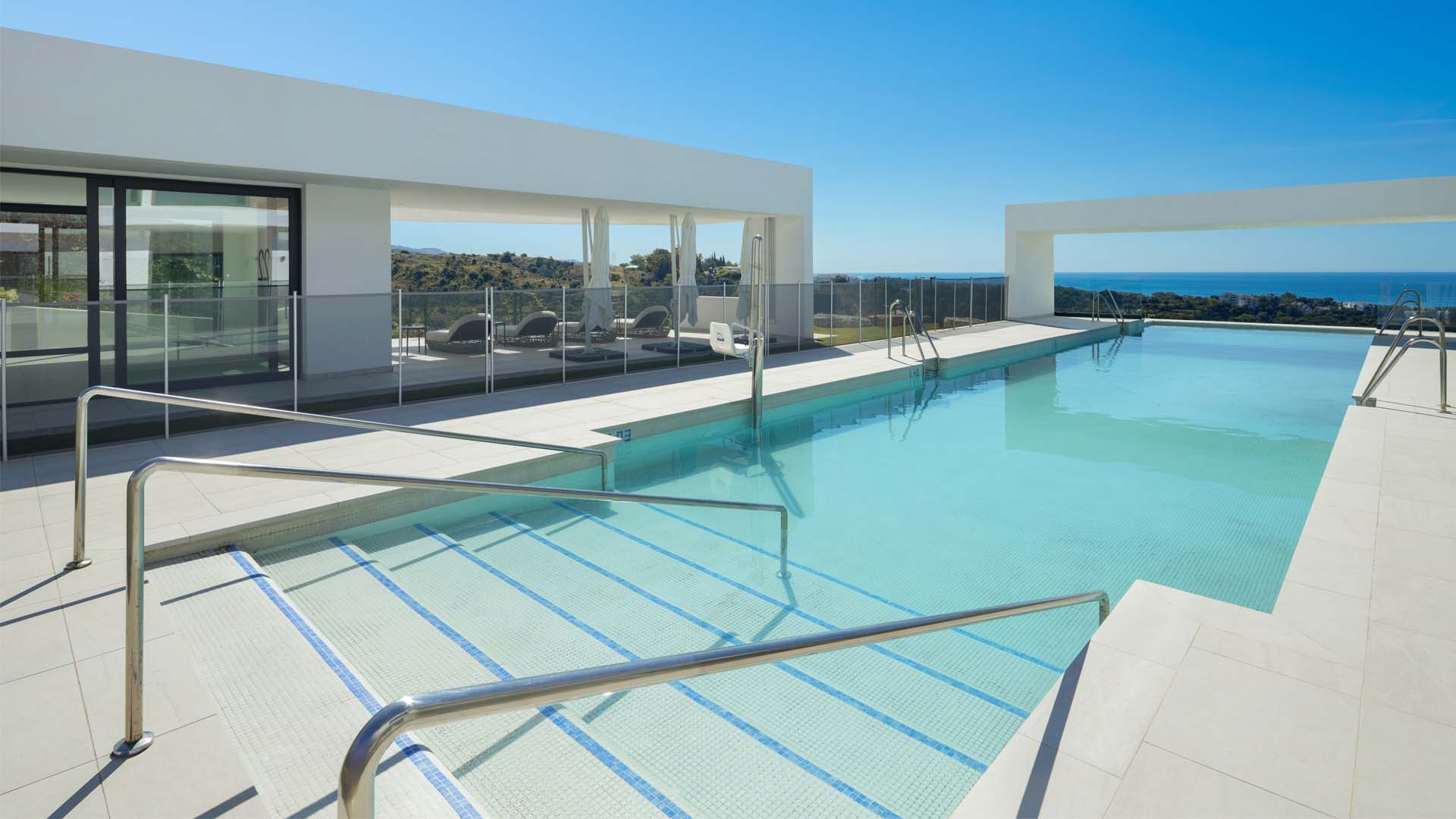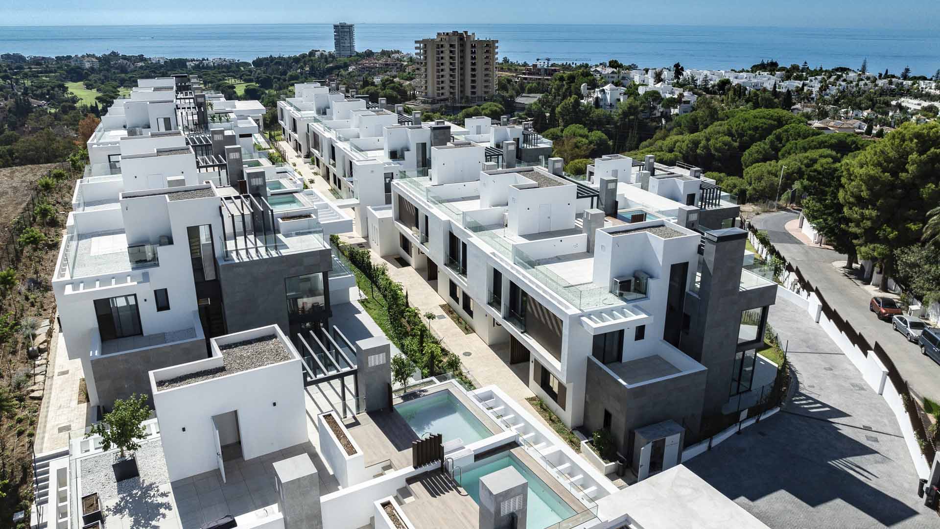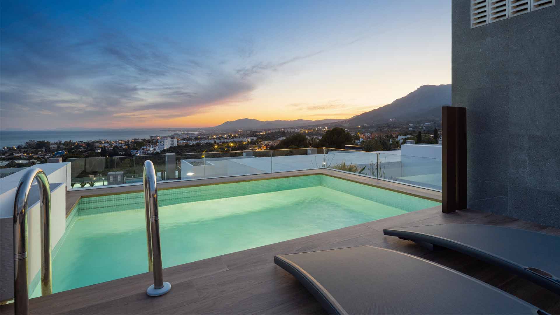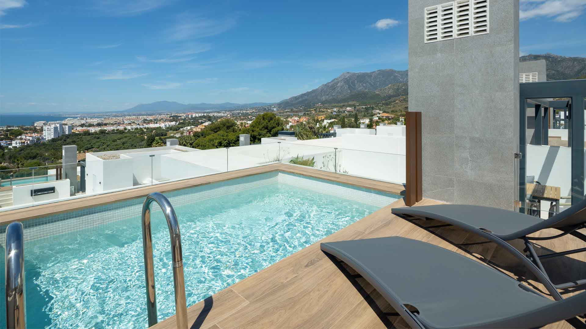Los adosados cuentan con solárium y piscina privada en la planta superior, un lugar desde dónde admirar la belleza de Marbella, su mar y sus montañas.